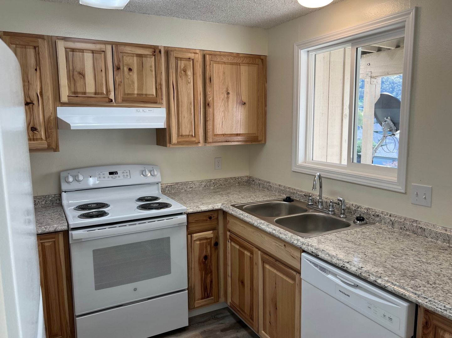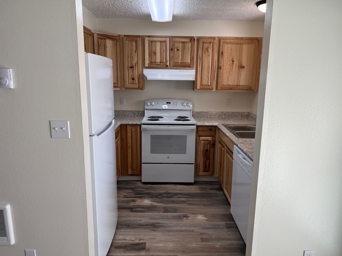 This is a two bedroom one bath downstairs apartment located in a residential setting. The unit provides a range, fridge and dishwasher. The owner pays water, sewer and garbage. The complex offers a small storage area.