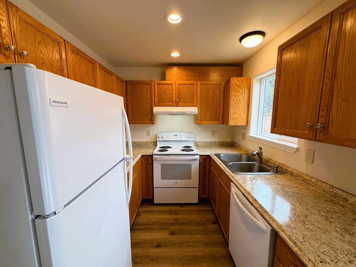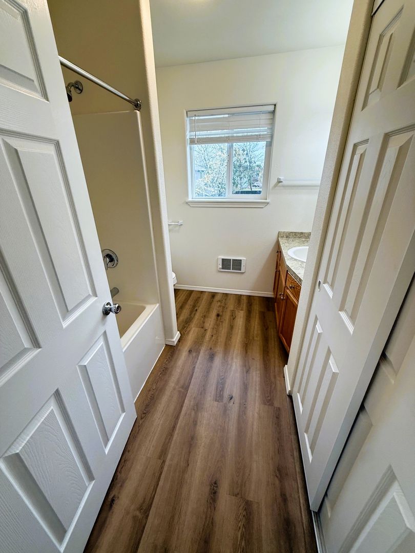 This is a two bedroom one and half bath duplex. The unit is updated with laminate flooring and carpet. The kitchen provides a range, fridge and dishwasher. The unit also provides washer/dryer hookups making laundry day a breeze. The unit has electric wall heaters to stay cozy! Water and garbage is paid for by the owner. The tenant is responsible for paying sewer, electric and any other amenities they chose.